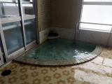 ●ひと昔前の研修センターのような建物ですが、泉質はさすがのものがあります。浴室には半円形の主浴槽が壁際にあり、扇形の小浴槽が入り口脇の角にあります。主浴槽がほぼ適温で、小浴槽がやや熱めの設定になっているようです。どちらも、注がれるお湯がそのまま洗い場の床に溢れています。
