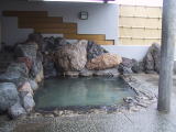 ●脱衣所を含め館内は地味ですが、浴室には小気味良い内湯と露天風呂があります。内湯は基本的にタイル張りですが、うまく大石を配置し、岩風呂風に仕立てられています。低予算で浴室の雰囲気を盛りたてる努力に好感がもてます。お湯は、やや褐色がかった薄濁り色で、弱アルカリ性らしく、程よいツルツル感があります。