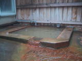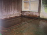 ●浴槽のお湯は赤茶けていて、少しぬるめで長湯するには最高です。夏季には露天風呂も設けられ、森の香りをかぎながらの入浴を楽しめますが、冬期は内風呂だけになるようです。内湯では、お湯の溢れるわずかな音を聞きながら、床一面の湯華模様をぼんやりと眺めていると、思わず長湯になります。
