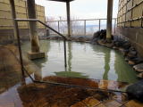 ●塩分の強い笹濁りのお湯は、キシキシ感ではなく弱いスベスベ感があります。「サンサンの湯」(3号井)と同じ源泉かと思いきや、6号井と9号井の混合湯のようです。循環ろ過ではないものの、塩素系薬剤が混入され僅かに塩素臭が残ります。泉質がそれに負けていないのが救いですね。
