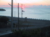 露天風呂から眺める日本海の夕日は、とてもきれいです(でも、電柱が)。