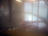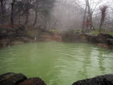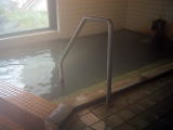 ●脱衣所が狭い割には内湯が広く、さらに露天風呂がとても広いことが特長です。また、男湯より女湯の方が内湯が広くなっているというのも少し変わっています(昨今の温泉ブームの影響かな?)。男湯の内湯のうち、下の広い方は薄緑色に濁っていて、入り口に表示している「鉄鉱泉」の方だそうです。内湯の上には、これよりも透明なお湯が満たされていて、こちらはナトリウム−塩化物・炭酸水素塩泉です。どちらも、口に含むと金気味が強いのが特徴で、この二つはほぼ同系の泉質ではないかと思います。