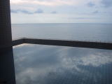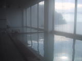 ●浴室は旅館建物の東側にあり、高台から海を見下ろす位置にあります。内湯の海側には大きな明るい窓がはめこまれ、広い日本海と刀掛け岩を見ることができ、好感の持てる浴室になっています。露天風呂はテラス状で、同じく日本海が眼下に広がります。ここでは、露天より内湯のほうが落ち着くかもしれません。