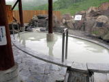 ●どの浴槽も豊富な硫化水素臭に焦げ臭、噴気臭、微アブラ臭を伴い火山性らしい温泉を楽しむことができます。白濁したお湯は透明度50cmくらいで、少し舐めてみると苦みとアブラ味がします。見た目ほど酸味は強くありませんが、目に入ると沁みます。最初はキシキシ感とスベスベ感が拮抗しますが、後にはキシキシ感が勝ってくる浴感です。でも、浴後の肌はスベスベになりました。