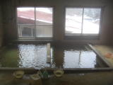 ●中浴場は2つに仕切られ、見たところ同じ源泉による適温(左)とぬる湯(右)に見えます。泉質は異なる表示がされていますが、どちらも透明で弱サビ味です。同じく、入り口から見て不動の湯、大黒の湯(オンコの湯)と名付けられています。こちらは時間帯によって男女の時間が区切られています。